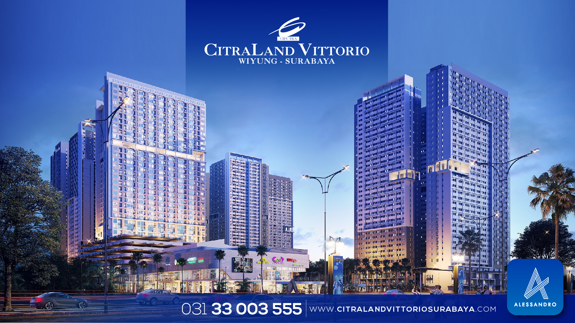 CITRALAND VITTORIO MERUPAKAN PENGEMBANGAN MIXED USE PERTAMA DAN TERBESAR DI KAWASAN WIYUNG, DENGAN LUAS LAHAN 7,5 HA. BERLOKASI SANGAT STATEGIS, BERADA DI JALAN UTAMA DI SURABAYA DENGAN LEBAR 40 METER, YANG MEMILIKI AKSES PERSIS DI NOL JALAN. PENGEMBANGAN SUPERBLOCK MIXED-USE MELIPUTI LIFESTYLE MALL YG DILENGKAPI DENGAN SUPERMARKET, DEPARTEMENT STORE, RETAIL, BIOSKOP, FOOD COURT DAN JUGA RESTO DAN CAFÉ; JUGA PENGEMBANGAN APARTEMENT, OFFICE, HOTEL, DAN SOHO.